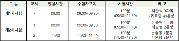 ⊙ 제2차 시험 : 제1차 시험에 합격자 자 또는 제1차 시험을 면제받은 자
