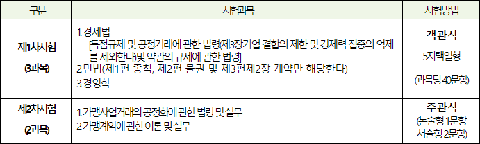 가맹거래사 시험 내용