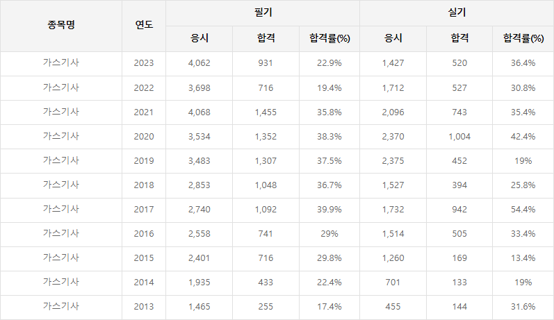 가스기사 합격률
