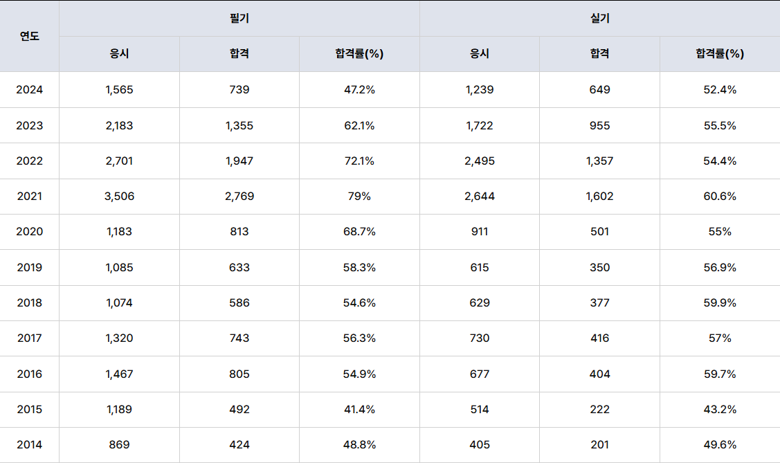 산업안전기사 란? 산업안전기사의 평균 합격률은 40% 중후반입니다. 유사한 전공이나 경험이 있는 응시자라면 조금은 수월하게 준비를 할 수 있으나, 그럼에도 대부분의 응시자들의 공통적인 의