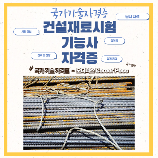 건설재료시험기능사란 건축물의 견고함과 내구성을 확보하고 부실공사를 예방하기 위해 건설재료에 관한 지식과 숙련기능을 가진 인력을 양성하기 위해 제정된 국가기술자격으로 한국산업인력고단에서 주관하고 있습니다. 응시자격에 제한이 없어 남녀노소 응시할 수 있으므로 진입장벽이 낮은 매력적인 자격증이며 고등학교에서 토목과 및 건축과를 전공하면 유리합니다.