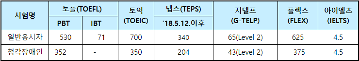 영어과목을 대체하는 영어능력검점 시험의 종류 및 합격에 필요한 점수