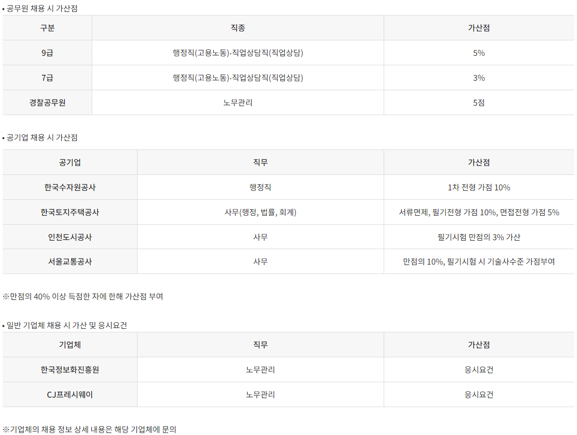 공인노무사 자격증 우대 및 가산점