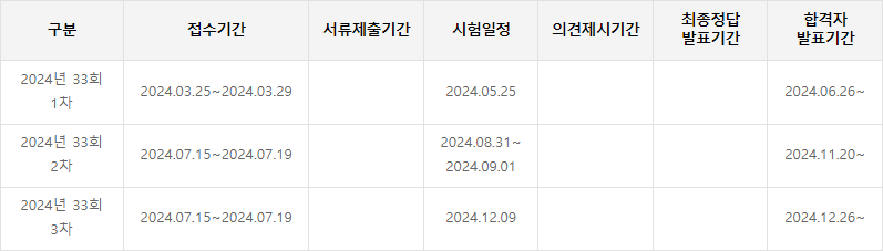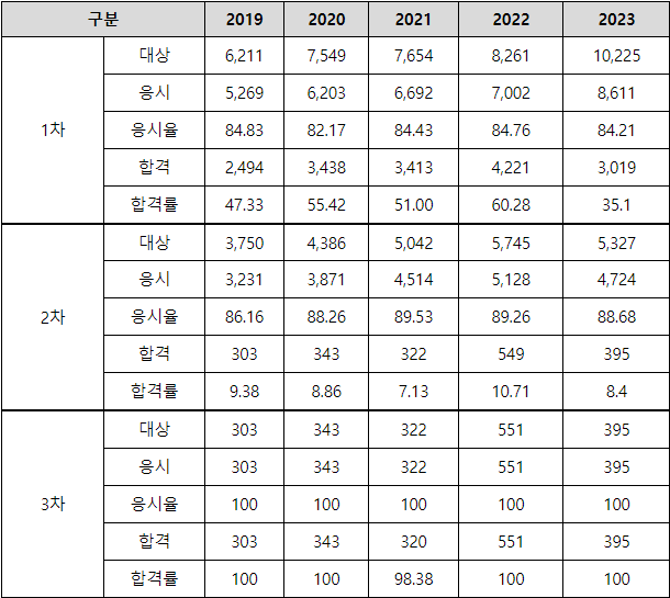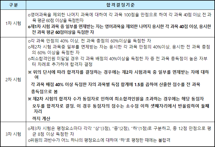 - 3차 시험은 당해연도 2차 시험 합격자 또는 전년도 2차 시험 합격자