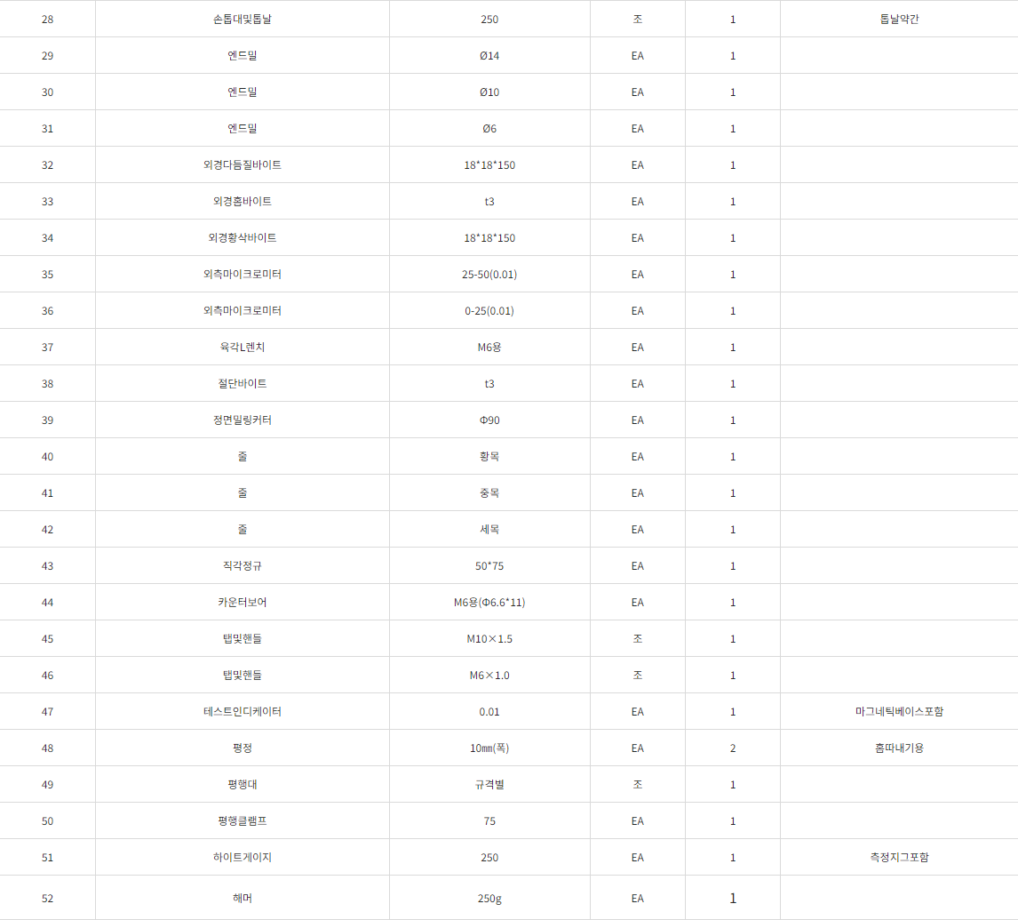 상기 목록외 수험자가 기계조립기능사 시험과 관련 필요한 공구나 수량 등은 자유로이 준비하셔도 됩니다.
