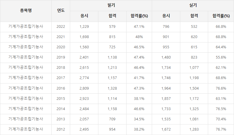 기계가공조립기능사 합격률