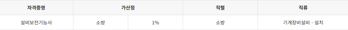 설비보전기능사 공무원 채용시험 시 가산점
