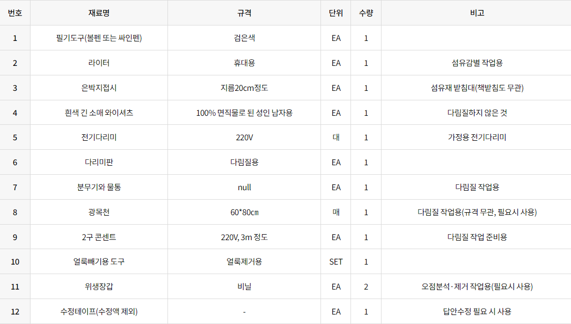 | 실기 | * 세탁실무 | * 작업형 (55분 정도) | 100점을 만점으로 60점 이상 |