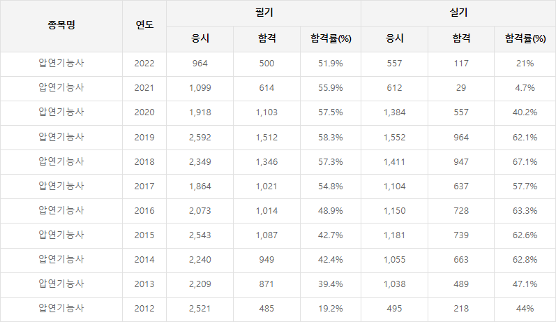 압연기능사 합격률