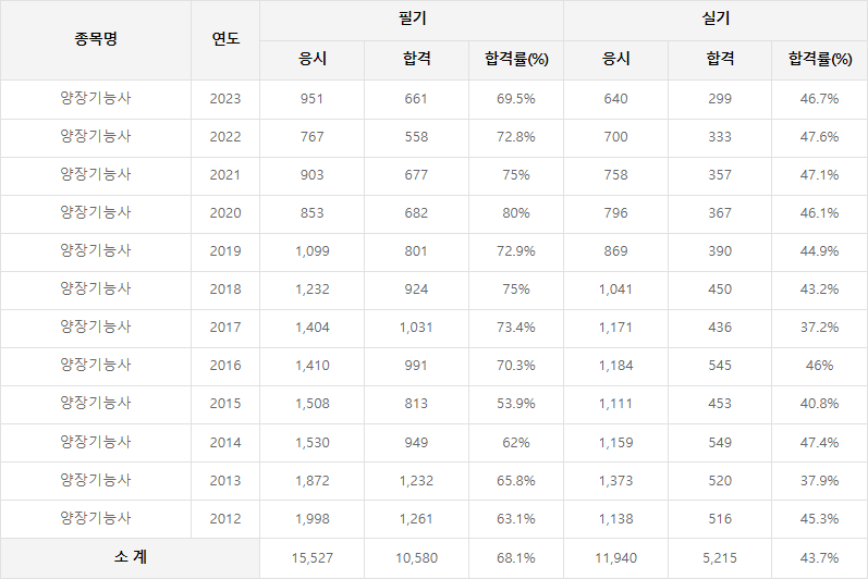 양장기능사는 무려 1982년부터 시행된 매우 역사 깊은 자격입니다. 82년 대통령령으로 양장기능사 2급 자격이 신설되었습니다. 이후 87년에 대통령령이 새로 제정되면서 양장기능사의 자격이 각 업무 분야에 따라 나눠지게 되었으며 각각 재단, 봉재, 양장재단, 양장봉재로 나누어 시행되었습니다. 해당 자격의 분류는 91년도에 각 자격이 신설되어 완전히 분류되었습니다.