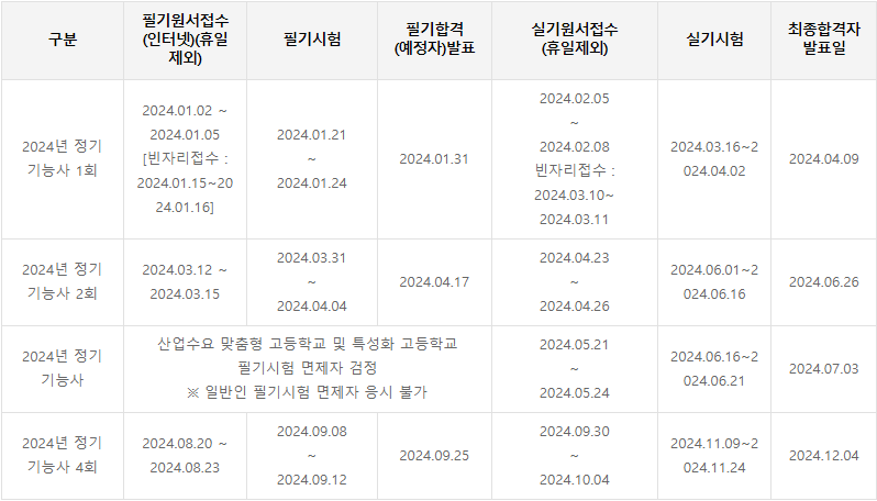양장기능사 시험 일정