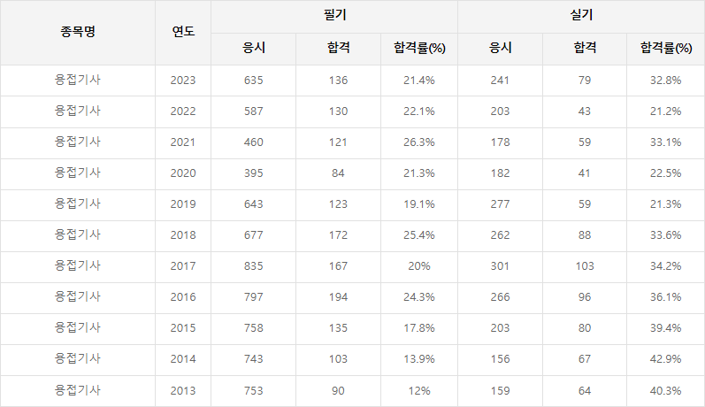 용접기사 자격증은 응시자격이 실무경험 보유자로 제한되어 있기 때문에 대다수의 응시자들이 상당한 배경지식을 보유하고 있다고 볼 수 있습니다. 그러나 그럼에도 불구하고 용접기사는 해당 분야에서 높은 수준의 자격증에 해당하기 때문에 혼자 공부하는 것에는 다소 어려움이 따를 수 있습니다. 특히 용접기사의 경우 필기시험 합격률이 매우 낮은 시험에 속하기 때문에 풍부한 실무경험을 보유한 응시자들이라도 반드시 기출문제를 중심으로 필기시험에 철저히 대비하는 자세가 필요합니다.