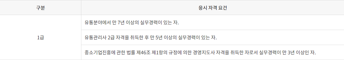 ▶ 유통관리사 2급, 3급의 경우 자격 제한이 없습니다. 1급의 경우에는 다음에 해당하는 자만 시험에 응시할 수 있습니다.