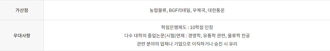 - 3급 : 유통산업분야에서 2년 이상 근무한 자로서 산업통상자원부가 지정한 연수기관에서 30시간 이상 수료 후 2년 이내 3급 시험에 응시한자에 대해 10점 가산