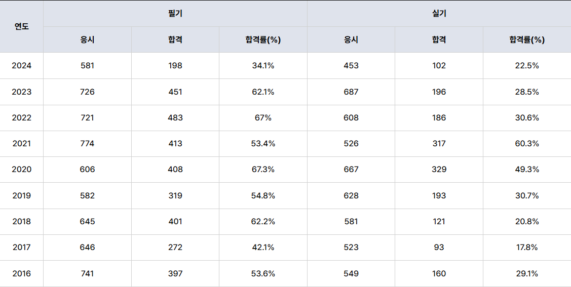 필기는 문제은행식이고 객관식이라 어렵지 않게 준비할 수 있지만 실기에서 어려움을 겪는 수험자가 많이 있습니다. 과거 문제가 100% 그대로 출제되는 시험은 아니기 때문에 신유형에 대한 대비가 필요하기 때문입니다. 특히 실기는 서술형으로 이루어지며 계산문제도 등장하기 때문에 답안을 추측하여 작성하는 것도 어렵습니다.