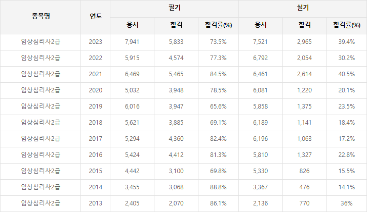 임상심리사2급 - 정보, 응시 자격, 시험 일정, 시험 내용, 합격률, 기출 문제, 합격 공략, 진로 및 전망