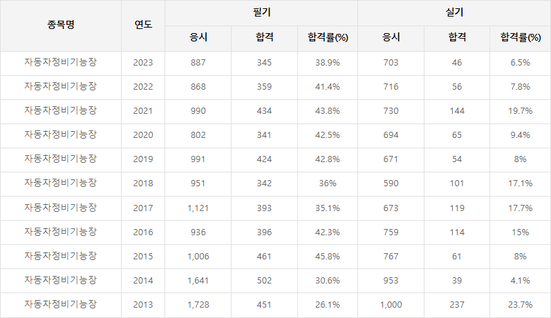 자동차정비기능장 합격률