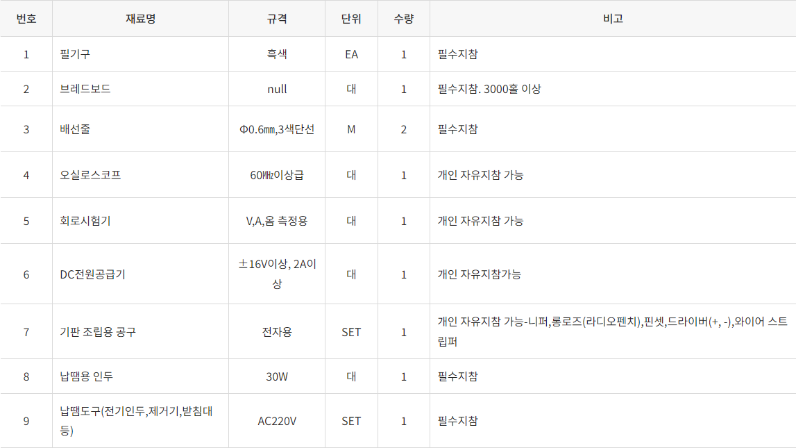 | 실기 | * 전자기기 실무 | * 복합형 [필답형 1시간 30분, 50점] [작업형 2시간 30분, 50점] |