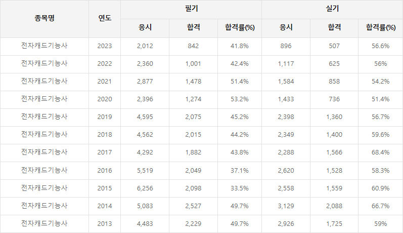 필기 | * 전기전자공학 * 전자계산기일반 * 전자제도(CAD) 이론 |