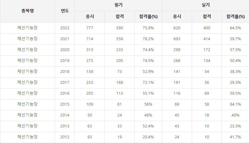 제선기능장 합격률