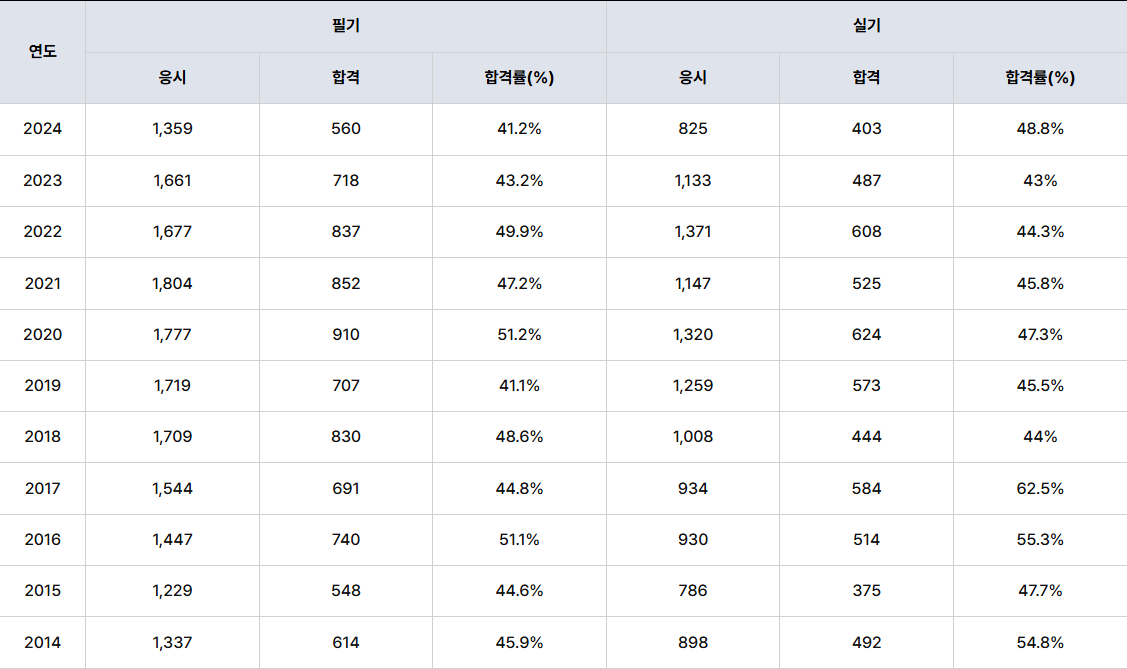 지적기사의 난이도는 크게 높은 편은 아니며, 필기시험이 CBT 문제은행식으로 이루어지기 때문에 기출문제를 많이 풀고 오답노트를 철저하게 하면 충분히 독학으로 합격할 수 있는 자격증입니다. 다만, 기사 자격증 특징답게 암기해야 하는 양이 많기 때문에 어려움을 느낄 수는 있습니다. 특히 비전공자의 경우 생소한 개념과 어려운 용어로 독학에 어려움을 겪을 수 있습니다. 그래도 전공자나 실무 경력자들은 비전공자에 비해 학습이 조금 더 수월할 것입니다.