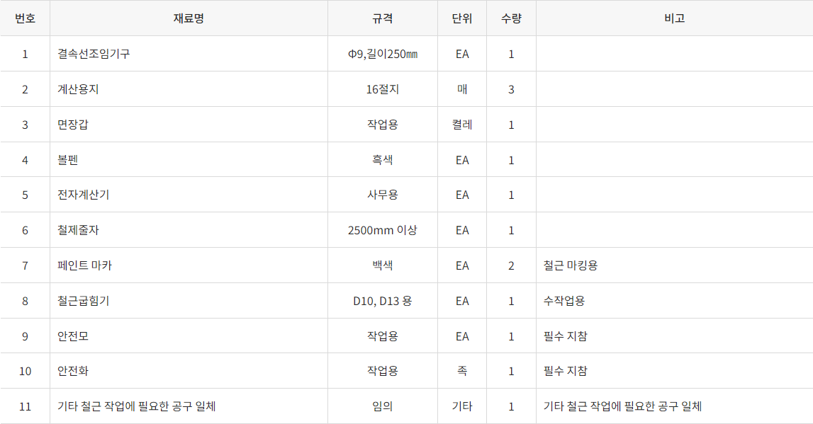 ※ 기타 철근 작업에 필요한 공구 일체(전동공구 제외)