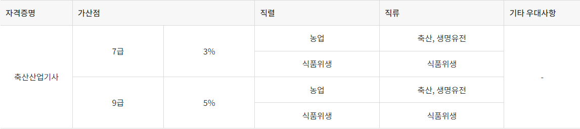 축산산업기사 가산점 및 우대사항