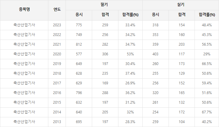 축산산업기사 합격률