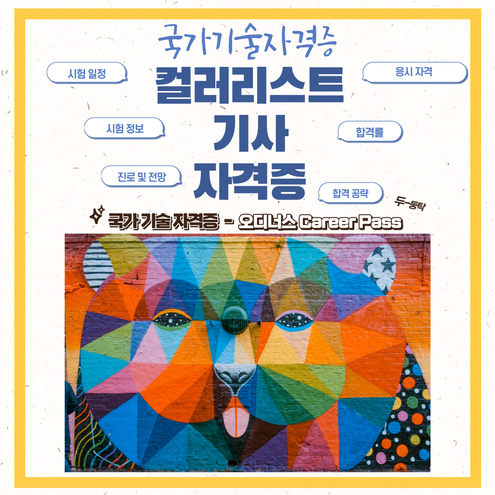 컬러리스트산업기사 란? 컬러리스트 전문 인력 양성을 위해 제정된 자격증 제도입니다. 자격증 취득 후 색채조사 및 분석, 기획, 디자인 관리, 색채 검사 등을 수행할 수 있습니다. 컬러리스트산