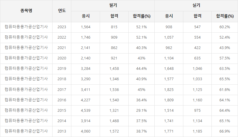 컴퓨터응용가공산업기사 - 정보, 응시 자격, 시험 일정, 시험 내용, 준비물, 합격률, 합격 공략, 기출 문제, 진로 및 전망