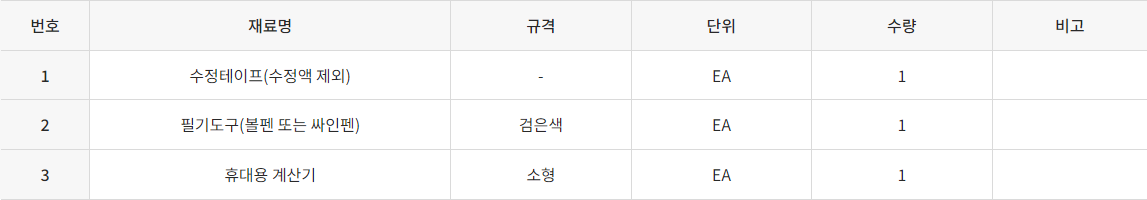 * 객관식 4지 택일, 과목당 20문항 (2시간 30분) |