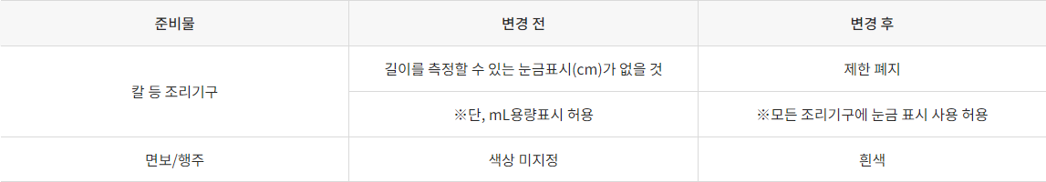 - 지참준비물은 일반적인 조리용을 의미하며, 기관명, 이름 등 표시가 없는 것이어야 한다.