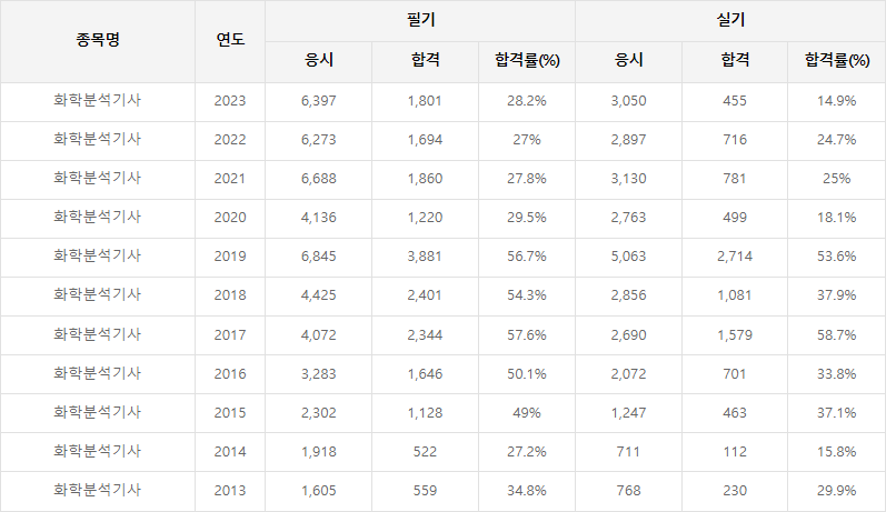 화학분석기사 - 정보, 응시 자격, 시험 일정, 시험 내용, 준비물, 합격률, 합격 공략, 기출 문제, 진로 및 전망