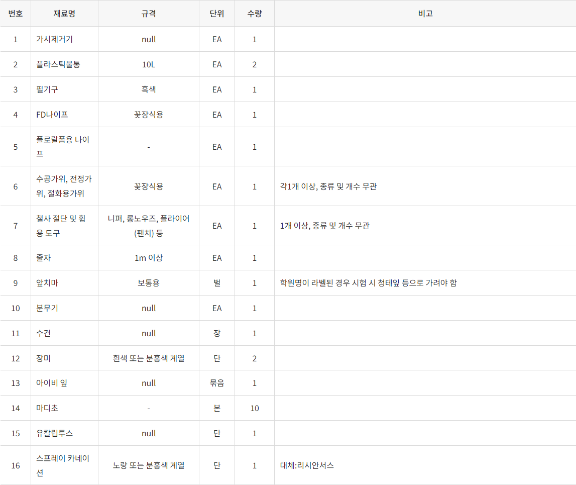 화훼장식산업기사 준비물