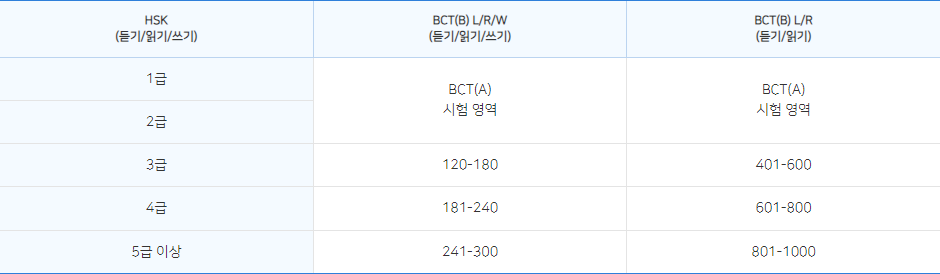 BCT와 HSK 상관관계