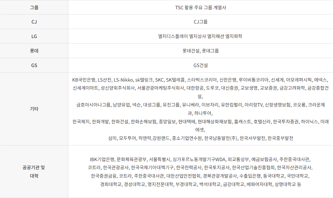 - 삼성 그룹, 인천국제공항공사, 한국전력공사 등에서 임직원 평가 목적으로 실시하고 있습니다.